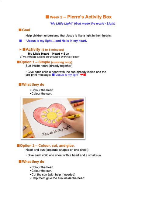 Goal: Help children remember that God made light and that Jesus is our light.