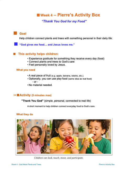 - “What did God make in our story today?” (Plants and trees!)