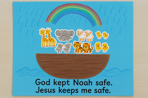 “Noah and his family were safe inside the ark. The ark kept them safe from the flood. The Bible tells us that Jesus is like a safe place for us. When we trust Jesus, He keeps us safe in His love and forgives our sins. God kept His promise to Noah, and God kept His promise to send Jesus to rescue us.”