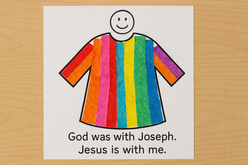 - “You are making a colorful coat like Joseph’s. Joseph’s brothers were unkind and sent him far away, but God never left him. God was with Joseph all the time. Jesus is with you all the time too—when you are happy, when you are sad, and when people are unkind. You can remember: ‘God was with Joseph. Jesus is with me.’”