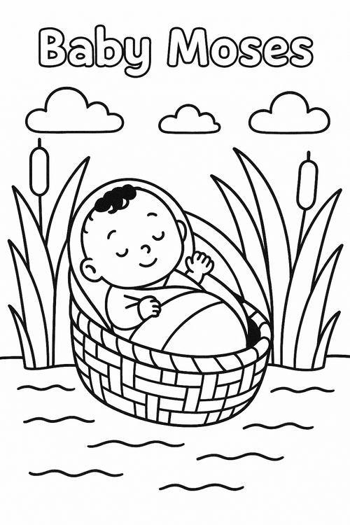 - Table: coloring page of Joseph walking on a road or standing in a far place, with crayons.