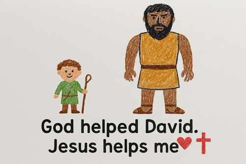 “God helped little David beat big Goliath. Jesus helps us when things feel big and scary.”