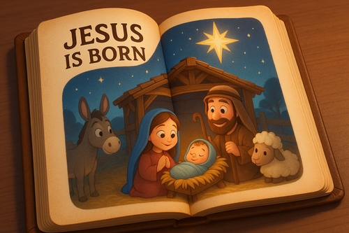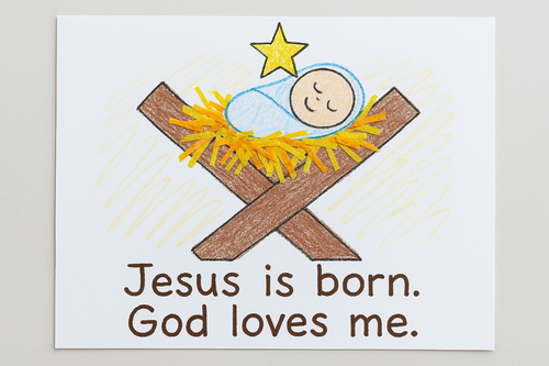 - “Your picture shows baby Jesus in a manger. Jesus is God’s Son. He came as a baby because God loves us so much. When you see this picture, you can remember: ‘Jesus is born. God loves me.’”