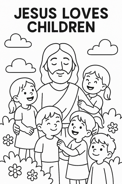- Add heart stickers or draw hearts around Jesus and the children.