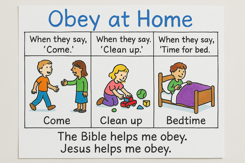 Thank You for the Bible that helps me obey. Thank You for my parents and teachers. I am sorry for the times I disobey.